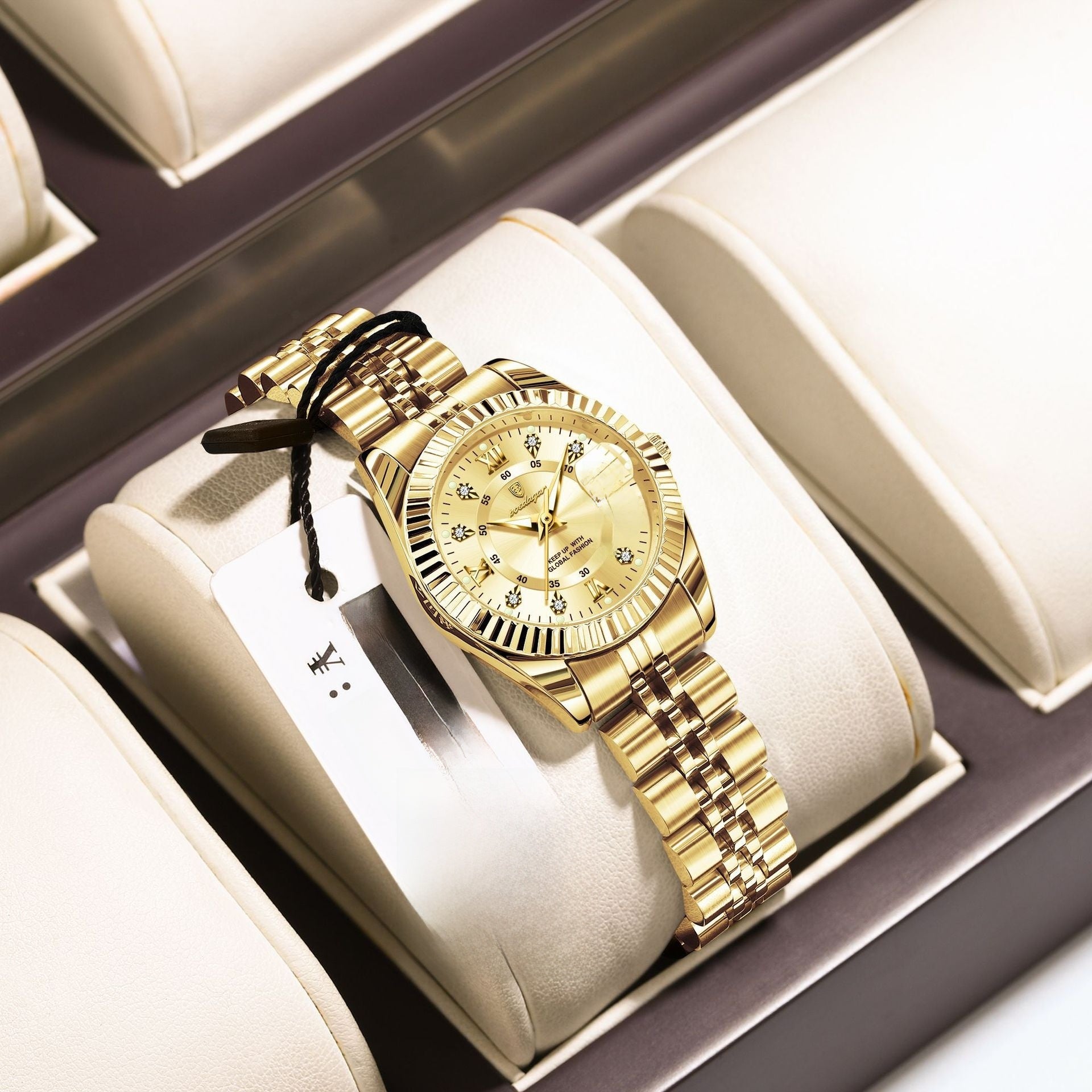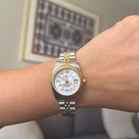 The luminous dial and refined contours capture light beautifully, creating a subtle radiance that feels both classic and contemporary. Perfect for women who appreciate elegance that speaks softly yet powerfully.